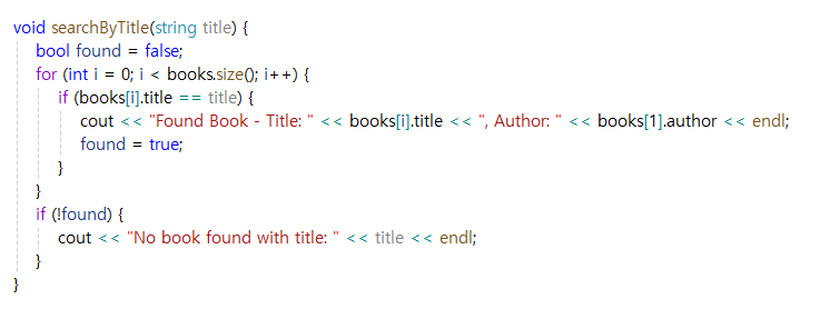 - books 벡터에서 제목이 일치하는 책을 검색하고 출력합니다.
