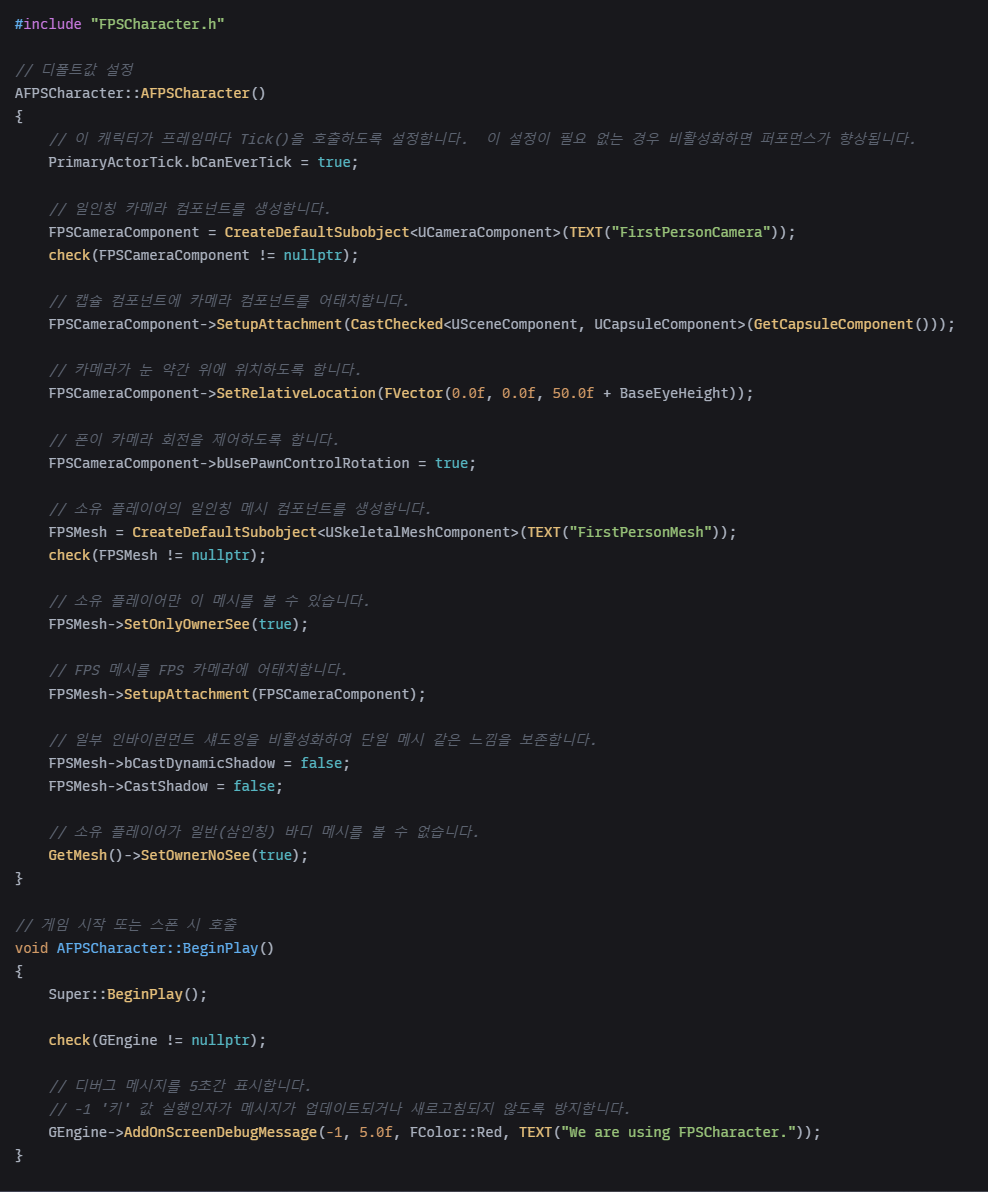 다음 함수 정의를 FPSCharacter.cpp 에 추가합니다.