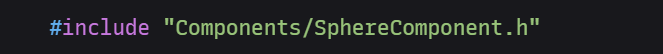3.다음과 같이 SphereComponent 헤더 파일을 추가합니다.