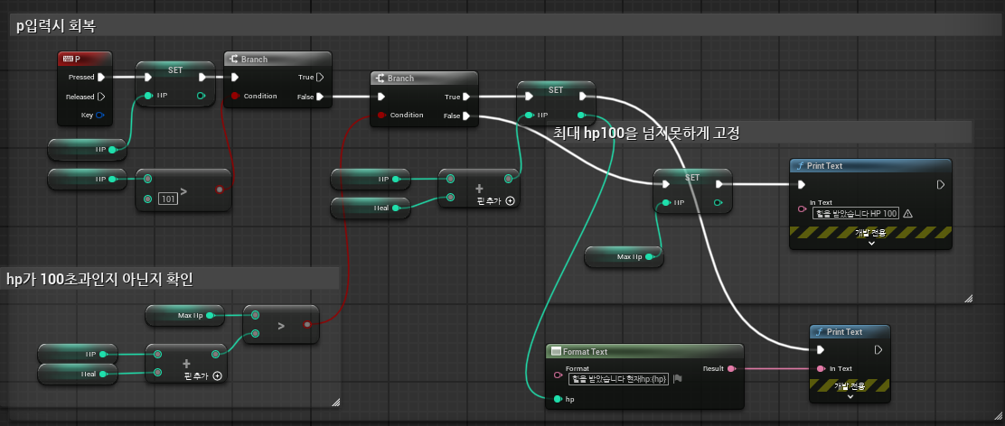 - Branch 노드를 이용해 HP > MaxHP일 경우 HP를 MaxHP로 제한.